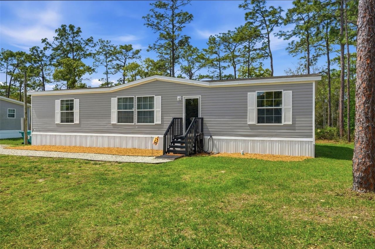 Welcome home to this adorable and affordable gem in the heart of Citrus County! Built in 2022, this well-loved 3-bedroom, 2-bathroom home offers modern comfort with thoughtful features throughout. Step inside to find fresh paint and durable vinyl flooring flowing seamlessly through the entire home. The split floor plan provides privacy, with a spacious primary suite featuring a large bedroom, an oversized walk-in closet, and a beautifully designed walk-in shower. The two guest bedrooms are generously sized, each with their own walk-in closets--perfect for family, guests, or a home office setup. The large laundry room adds convenience and includes direct access to the backyard. Outside, you'll love the great-sized lot with a rocked driveway and walkway, plus a spacious backyard shaded by mature trees--ideal for relaxing, entertaining, or future additions. Situated high and dry and not in a flood zone, this home offers peace of mind along with charm and value. Move-in ready and waiting for its new owners-don't miss this opportunity!